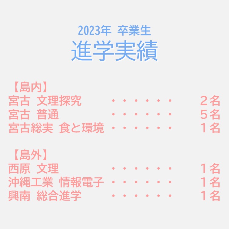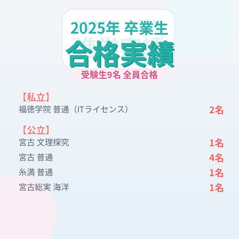 沖縄公立高校入試を含め、2025年度の受験生9名は全員合格でした。