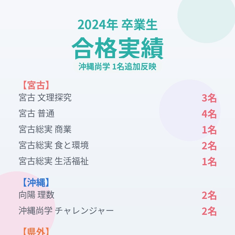 沖縄公立高校入試を含め、2025年度の受験生は全員が合格しました。